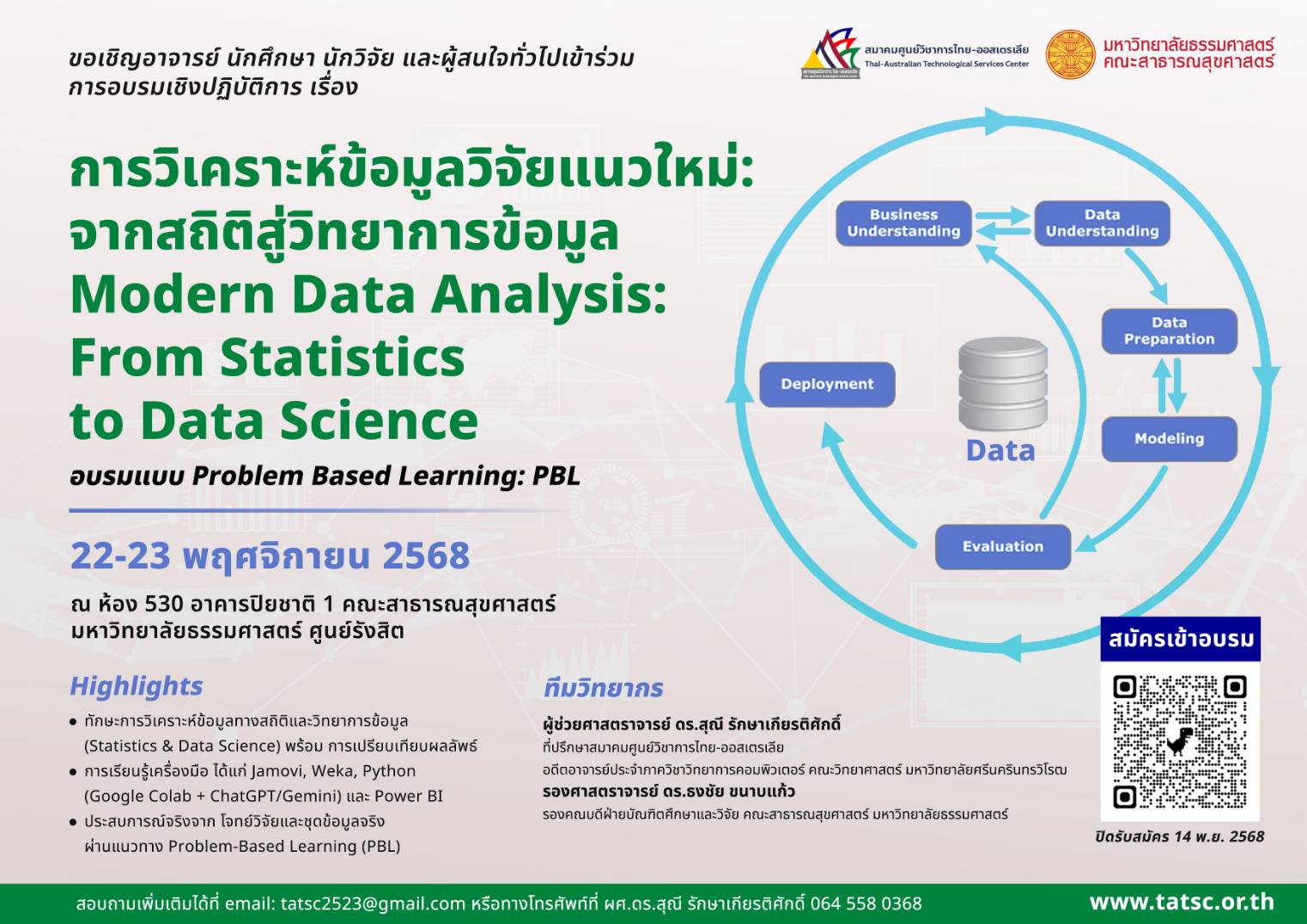 Events การอบรมเชิงปฏิบัติการ: การวิเคราะห์ข้อมูลวิจัยแนวใหม่ – จากสถิติสู่วิทยาการข้อมูล Modern Data Analysis: From Statistics to Data Science